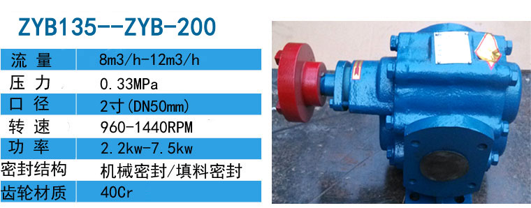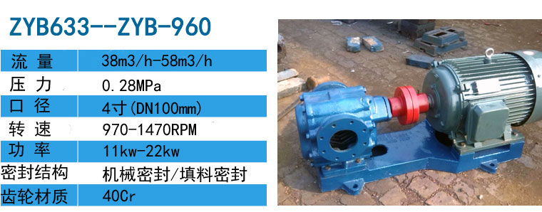 ZYB重油泵,ZYB煤焦油泵根據價質的特性在結構主要零部件材質以及軸端密封等方面均做了相應的改進,重油泵,煤焦油泵使得煤焦油泵更適應特定的介質,重油煤焦油泵使用壽命是同種一般齒輪泵的5倍以上。