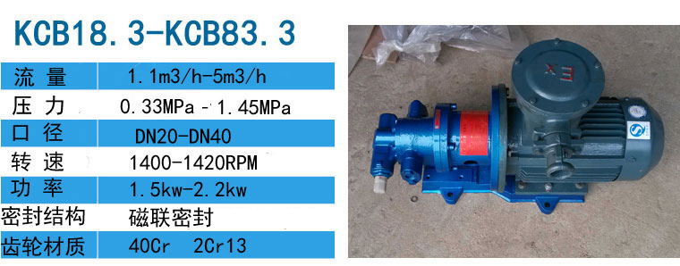| KCB-33.3 | 2 | 33.3 | 1420 | 1.45 | 5 | 44 | 2.2 | Y100L1-4 |